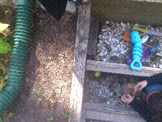 On a side note: I didn't realize Otis was using the window well as a toy box.